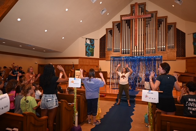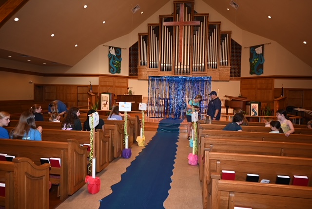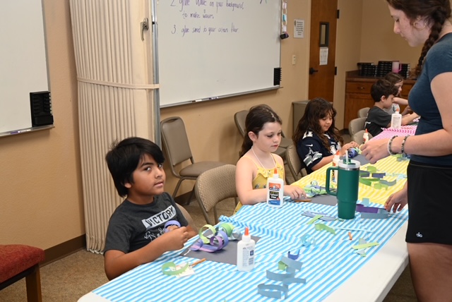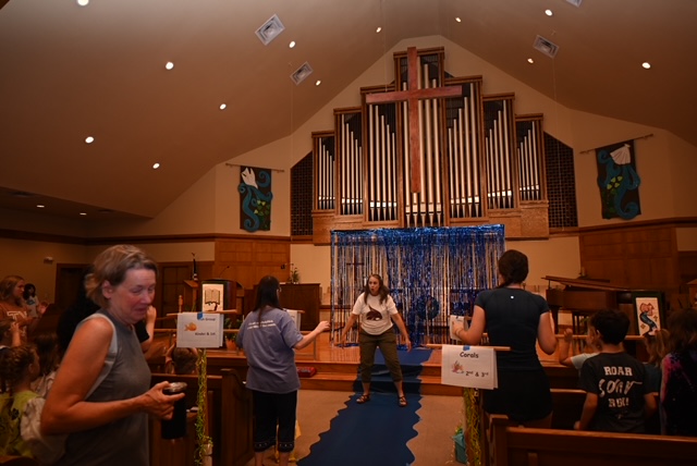 July 8, 2024 by Senior Pastor The first day of Vacation Bible School is officially over! We have over 70 participants attending this week. Thank you, volunteers, for teaching this great group about baptism through arts and crafts, games, music, and science.